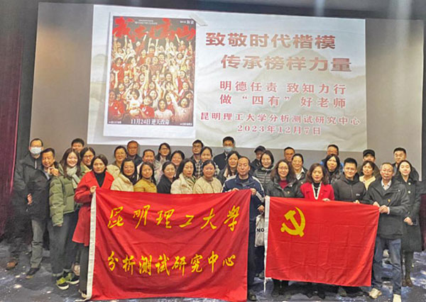 为深刻领会习近平总书记关于教育的重要论述和党的二十大精神,全面贯彻党的教育方针,践行立德树人的初心,引导全中心广大党员干部、师生员工统一思想和行动,牢记使命担当,分析测试研究中心党支部与工会小组联建,于2023年12月7日,组织全体党员、教职员工开展《我本是高山》观影党建带群建活动,从“时代楷模”张桂梅同志身上汲取榜样力量,激发全体教职员工积极投身于教育强国建设中,明德任责,致知力行,做“四有”好老师。