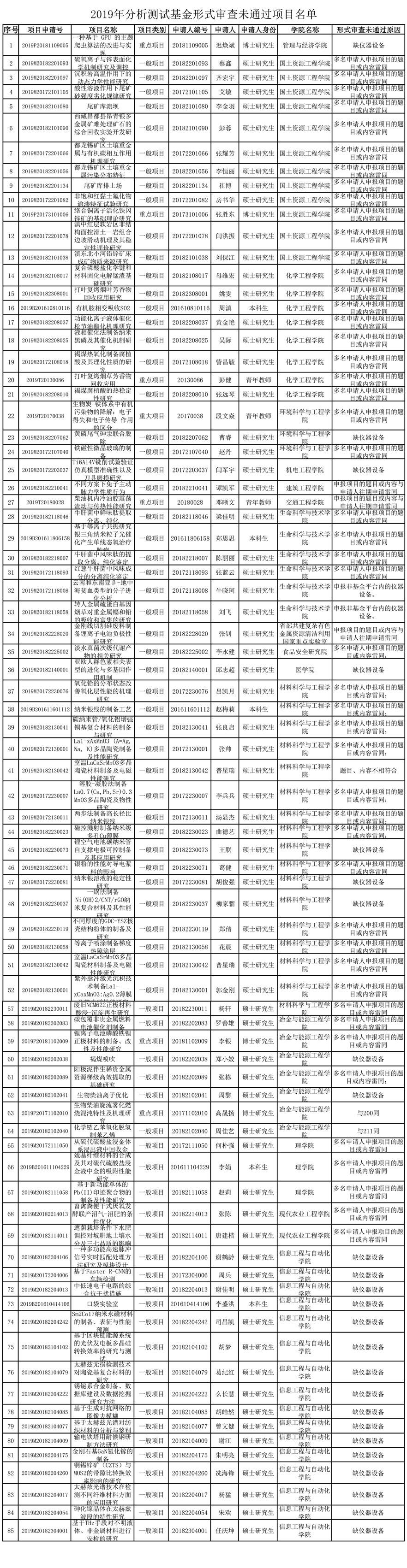 2019年度昆明理工大学分析测试基金形式评审结果公告
